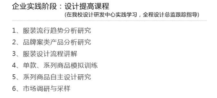 课程均是针对服装公司对服装人才要求制定的,进行系统、专业、针对性训练,以实践为主,重点培养学生的独立设计、制版制作以及陈列能力、操作整盘货能力。