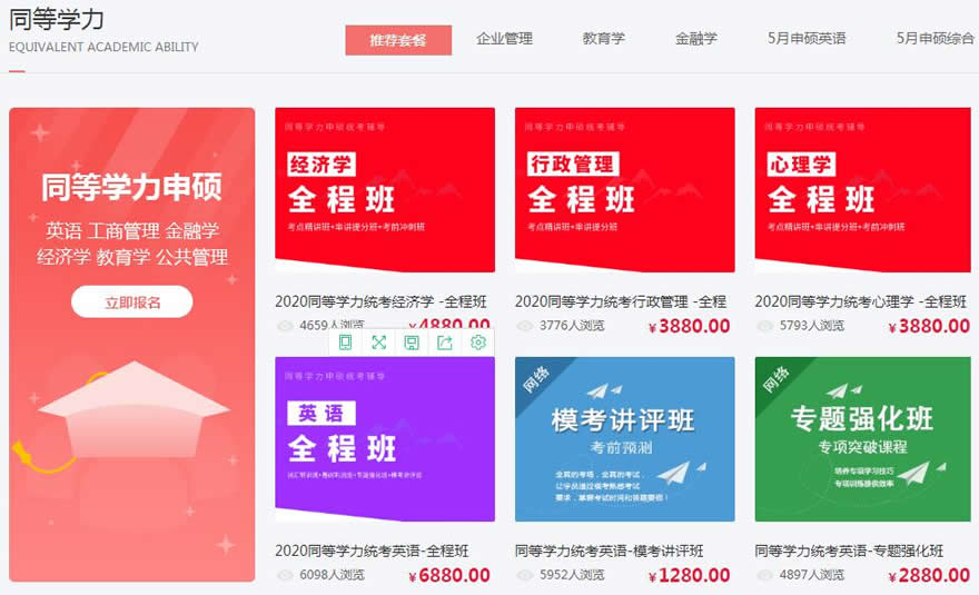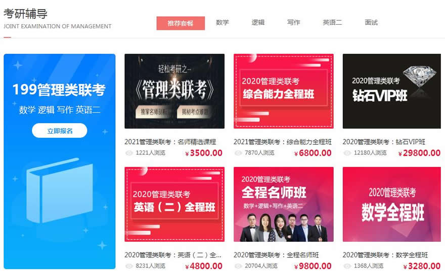 课程描述* (课程描述里面可以包含:机构介绍,课程内容、课时、课程特色、适合人群、招生对象、课程目标,课程图片,字数不少于300字等) | 只能招【管理类】中的7个专业(查看下面的‘管理类7个专业介绍’) 课程内容:【数学,英语二,写作,逻辑,面试】 适用人群:本科毕业即可,要有学位证;大专满5年 一、课程设置 系统课程 根据名师对于*考情的把握,精心梳理数学、逻辑、写作、英语四科的考试必考点与可能考点:必考点全面渗透式讲解,可能考点拓展延伸式讲解,将知识考点与题目类型穿插式讲解,从而做到考点模块化、方法类型化、题型明确化,进而实现举一反三和类型化解题,大幅提升学习效率与学习成绩 真题强化 历年真题是备考学习*的模拟试题,这是公认的常识。真题强化通过对于数学、逻辑、写作、英语四科历年真题的原子化超精细讲解,致力于打通题型与考点之间多重阻碍,从而将必考点、可能考点、必考题型、可能题型、考试难点五大模块融会贯通,进而破解“学了理论不会做题”的备考魔咒,确保在备考的黄金时期实现考分的巨大跨越 真题集训营 五套综合能力与英语(二)真题全方位名师讲解;数学注重不同年份的难度差异,对于核心考点与重要题型进行串联式讲解,一题多解,一题多讲;逻辑命题思维渗透与文字材料的多样化处理,授课深入浅出,注重真题考点的横向与纵向维度拓展;写作紧扣联考写作命题思维,多维度梳理材料逻辑结构,分析优秀写作范文,紧密把握写作得分点;英语注重解题技巧提升,切实提高客观题答题速度,精心研析写作大小作文,给出*提升方案 考前大串讲 联考数学、逻辑、写作、英语四科考点全面复盘,紧抓核心考点,聚点成线,养成解题整体思维;提炼四科知识精华,遵循真题规律,筛选出必考点,直击题型脉络;立足于真实考场,传授高效实用的解题技巧,点石成金,兼顾速度与准确度 5.冲刺技巧与预测 严选行业*名师进行,多年教学教研经验为授课质量背书;深度复盘历年考试真题,深入浅出讲解解题思路,快速掌握极速夺分技巧;考纲核心要点提炼,高频高点逐一击破,独家考试数据模型有效评估命题趋势 6.一对一(30小时) 一线教学专家展开专业化学习能力评测,给出量身定制的专业化学习辅导方案,差异化满足学员对于不同学科成绩需求;依据学员时间自由度,匹配学习时间,从而进行高效的一对一名师辅导;多年辅导经验的辅导员跟踪学员学习轨迹,确保学员按时完成学习方案;一对多学习社群,多科优秀师资聚集式提供答疑备考辅导,解决学习疑难 中英文写作批改课 上万篇写作文章批改老师进行一对一文章批改,确保批改质量水平;逐字逐句批改,深入挖掘写作过程中的存在的语句、语法与立意问题,多维度全方面揭露文章中存在的瑕疵、毛病、问题、错误;批改老师依托雄厚的写作理论基础与实践经验,给出专业化修改意见和提升方案,从而帮助学员可视化、效果化提升写作成绩,进而达到写作良好、乃至优秀水平,让写作从此之后不再是丢分项,而是得分项 二、课程特色: 1.在线测评 2.学员档案:成长记录,班主任服务,电子档案 3.订制学习方案 根据在线测试,制定出符合学员自身情况的学习方案 4.班主任在规定时间内一对一答疑 5.阶段测试:学完一章测一下,每两周测一下,班主任发测试题 6.*密押2套电子版 7.在线题库 8.英语单词书籍1本 语法长难句书籍1本 真题书籍4本 真题卷子2本 摸底试卷2本 *四套卷2本 配套单科书籍1本 配套新教材书籍4本 线下/线上模考及讲评 课程目标:考研成功 -------------------------------------------------------- 三、管理类7个专业介绍 ①工商管理硕士 英文缩写:MBA(工商管理硕士)和EMBA(高级工商管理硕士) 专业方向:市场营销管理、战略管理、人力资源管理、财务管理、企业管理 适合人群:外资企业,世界500强,私企老板或管理层员工 ②公共管理硕士 英文缩写:MPA(公共管理硕士) 专业方向:城市与区域发展、政府公共关系、社会发展与管理 、教育管理、行政管理 适合人群:政府机关,事业单位,非政府公共机构 ③工程管理硕士 英文缩写:MEM(工程管理硕士) 专业方向:重大工程建设企业,生产管理,物流管理,工程项目管理,供应链管理 适合人群:重大工程建设企业,新产品设备制造企业,科技型企业 ④会计硕士 英文缩写:MPAcc(会计硕士)和Maud(审计硕士) 专业方向:现代会计,审计,财务会计,国际会计,成本管理会计,财务管理 适用人群:90%考生为应届本科生(不限专业) ⑤审计硕士 英文缩写:Maud(审计硕士) 专业方向:现代会计,审计,财务会计,国际会计,成本管理会计,财务管理 适用人群:90%考生为应届本科生(不限专业) ⑥旅游管理硕士 英文缩写: 专业方向:旅游企业管理,旅游市场营销,旅游规划与开发,旅游目的地研究,旅游文化,旅游经济 适用人群:旅游行业 ⑦图书情报 英文缩写:MLis(图书情报) 专业方向:现代会计,审计,财务会计,国际会计,成本管理会计,财务管理 适用人群:90%考生为应届本科生(不限专业) |