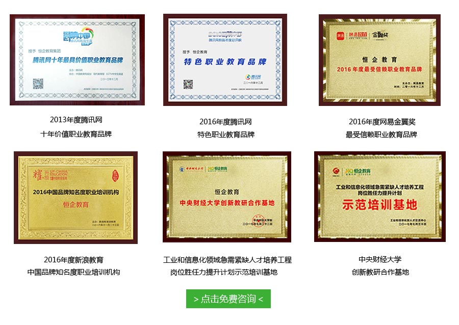 恒企教育是一家提供先进会计技术、为各行业培养实战型会计人才的O2O会计培训机构。其研发的7大课程教材相继获国家著作权,与多所高等院校形成学历业务合作。2016年恒企获“AAA级信用企业”、“全国315质量服务客户满意诚信企业”“具竞争力行业品牌”“中国著名品牌”、 “百度金融教育信贷合作伙伴”、“守合同重信用企业”、“重视人才发展企业”等殊荣